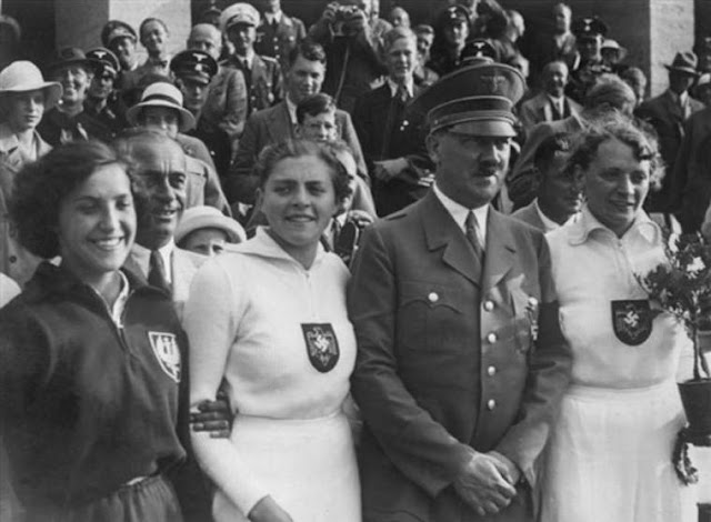 Mocno zażenowany wąsacz, wyginający wargi w coś, co ma przypominać uśmiech, niezgrabnie pozuje do zdjęć z ładnymi medalistkami... Dziewczyny z 1936 roku pewno wybuchały śmiechem, patrząc na jego miny. Wtedy nikt nie przypuszczał, że już wkrótce za sprawą tego groteskowego Niemca cały świat stanie na głowie. Że od jednego jego słowa będzie zależało być albo nie być pojedynczych ludzi i całych narodów.