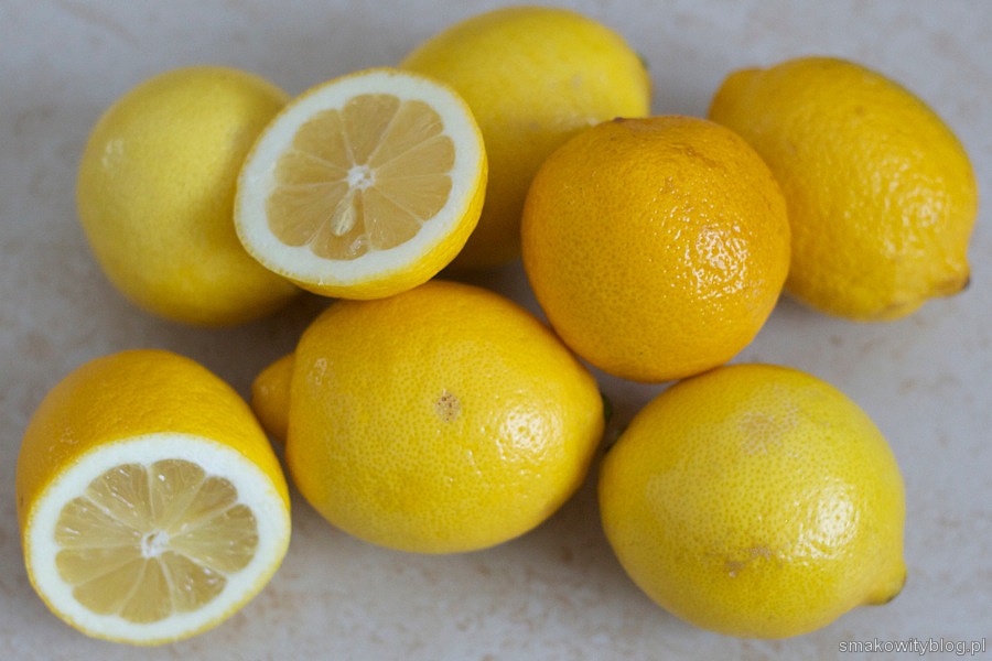- Cytryny parzymy, połowę obieramy. Kroimy na części.